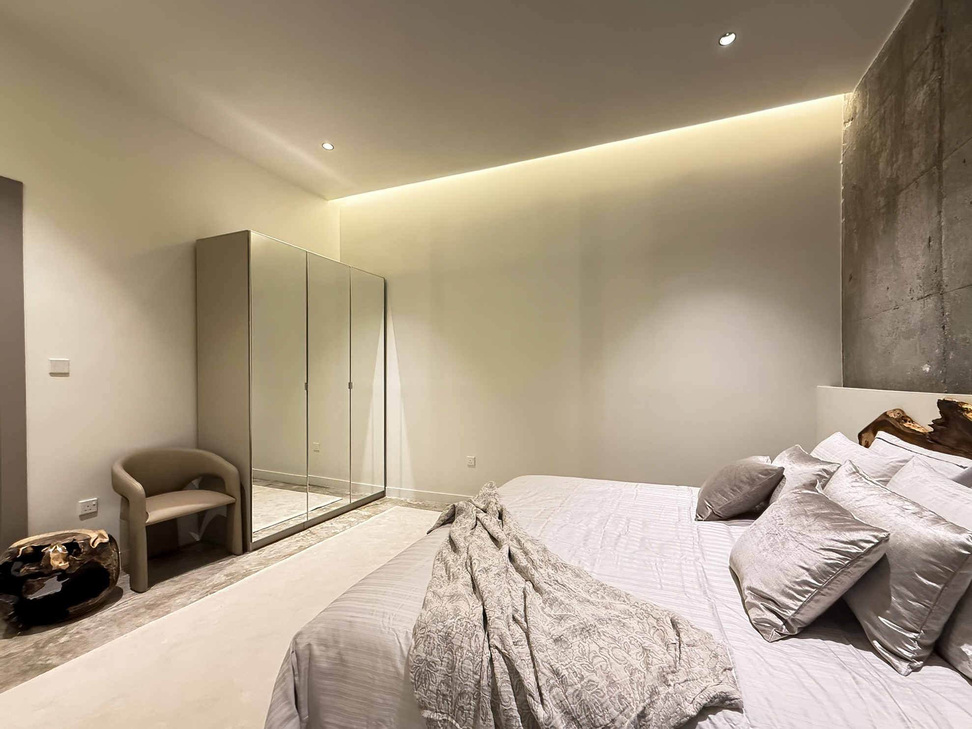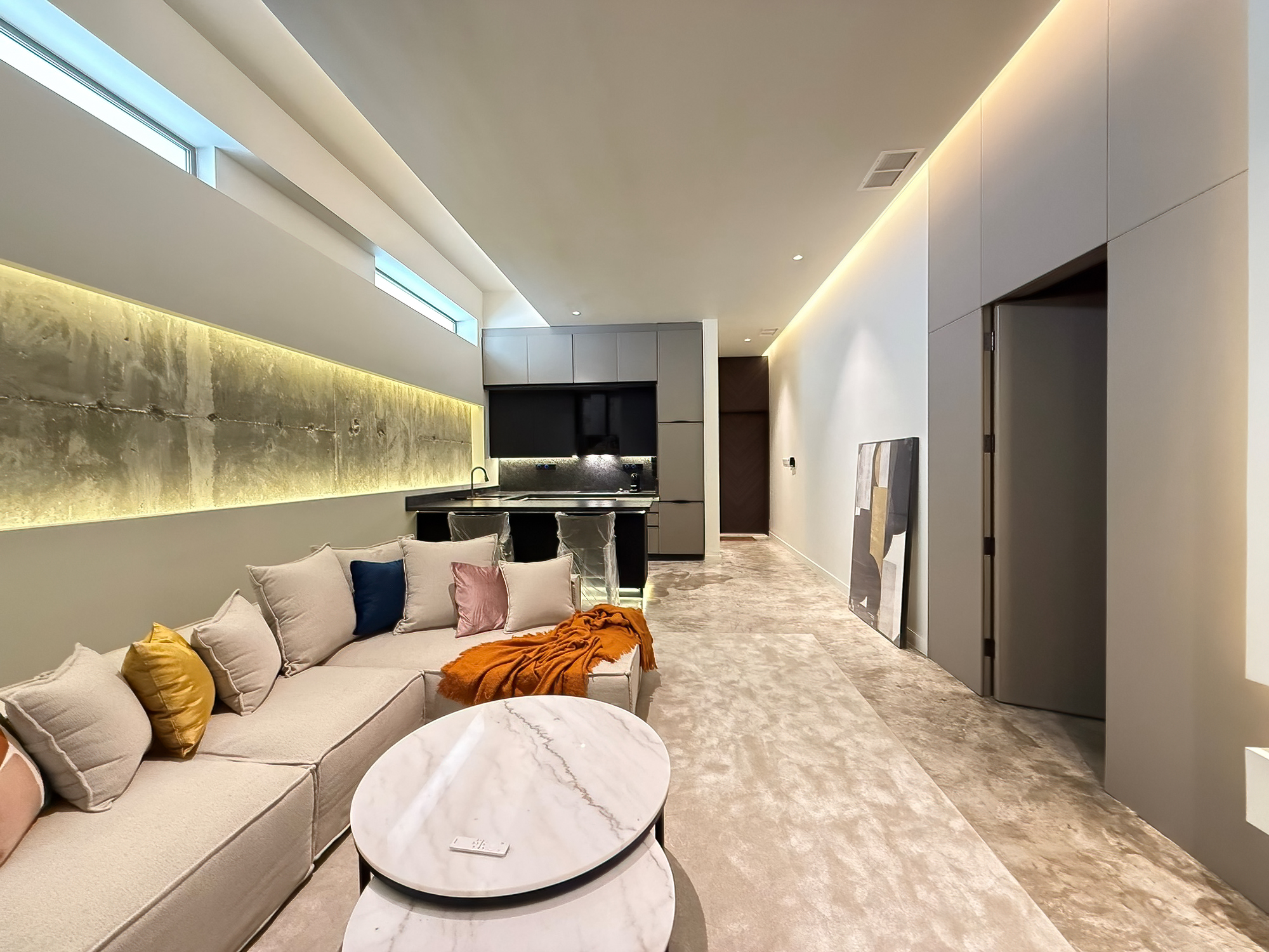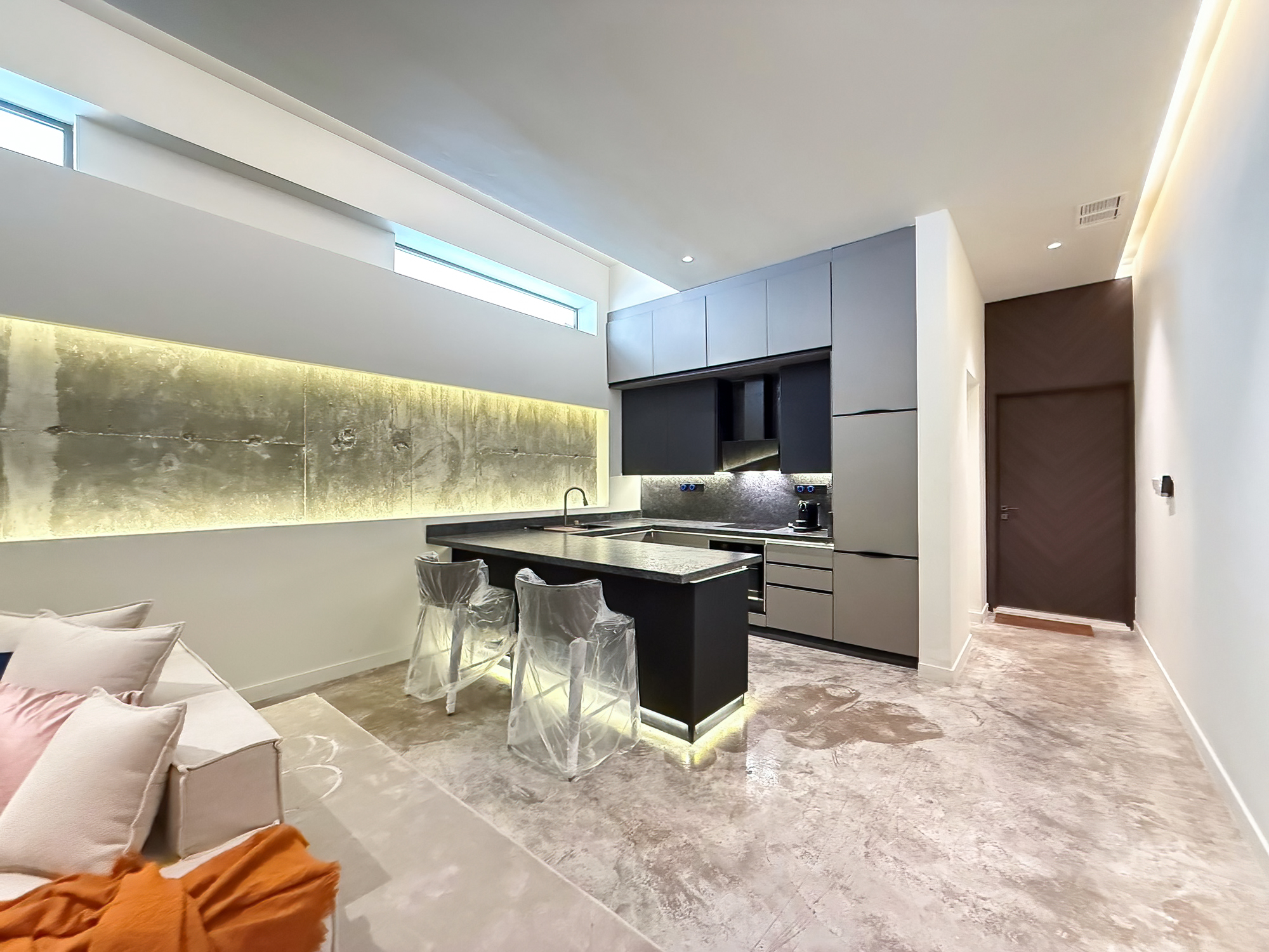 Wonderful, modern furnished apartment for rent in Abu Fatira, Kuwait – 1 bedroom, 1 bathrooms, living room w/open plan kitchen.