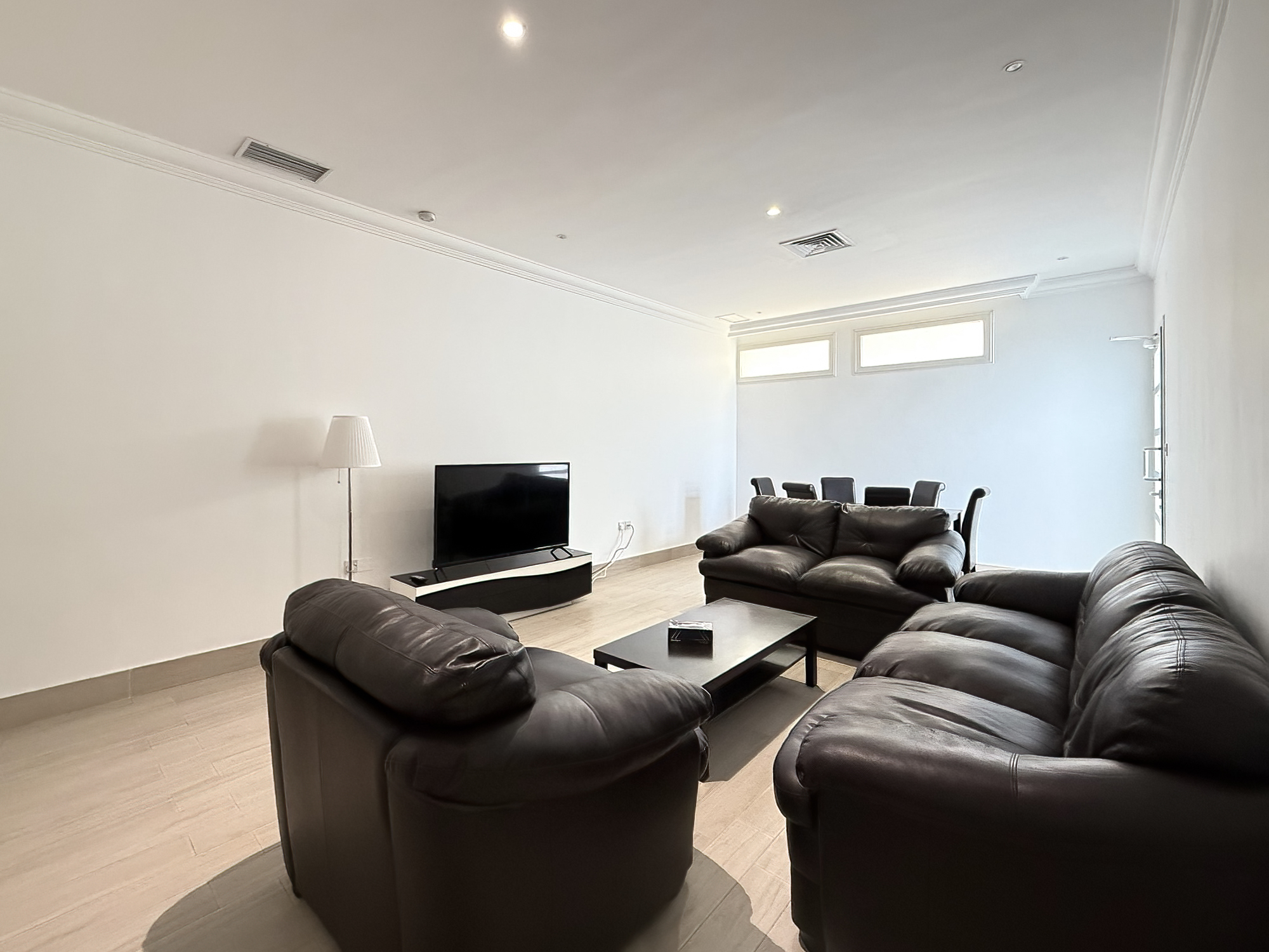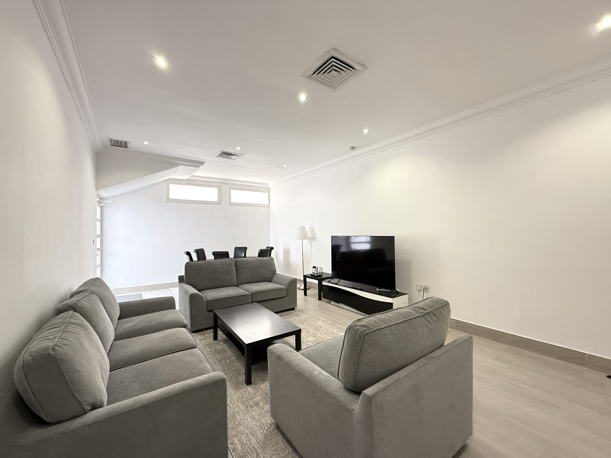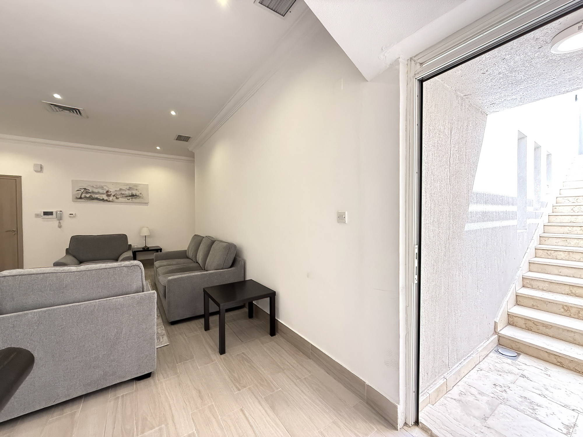 Furnished and unfurnished basement apartments for rent in Fnaitees, Kuwait – 3 bedrooms, 2.5 bathrooms, living room, kitchen.