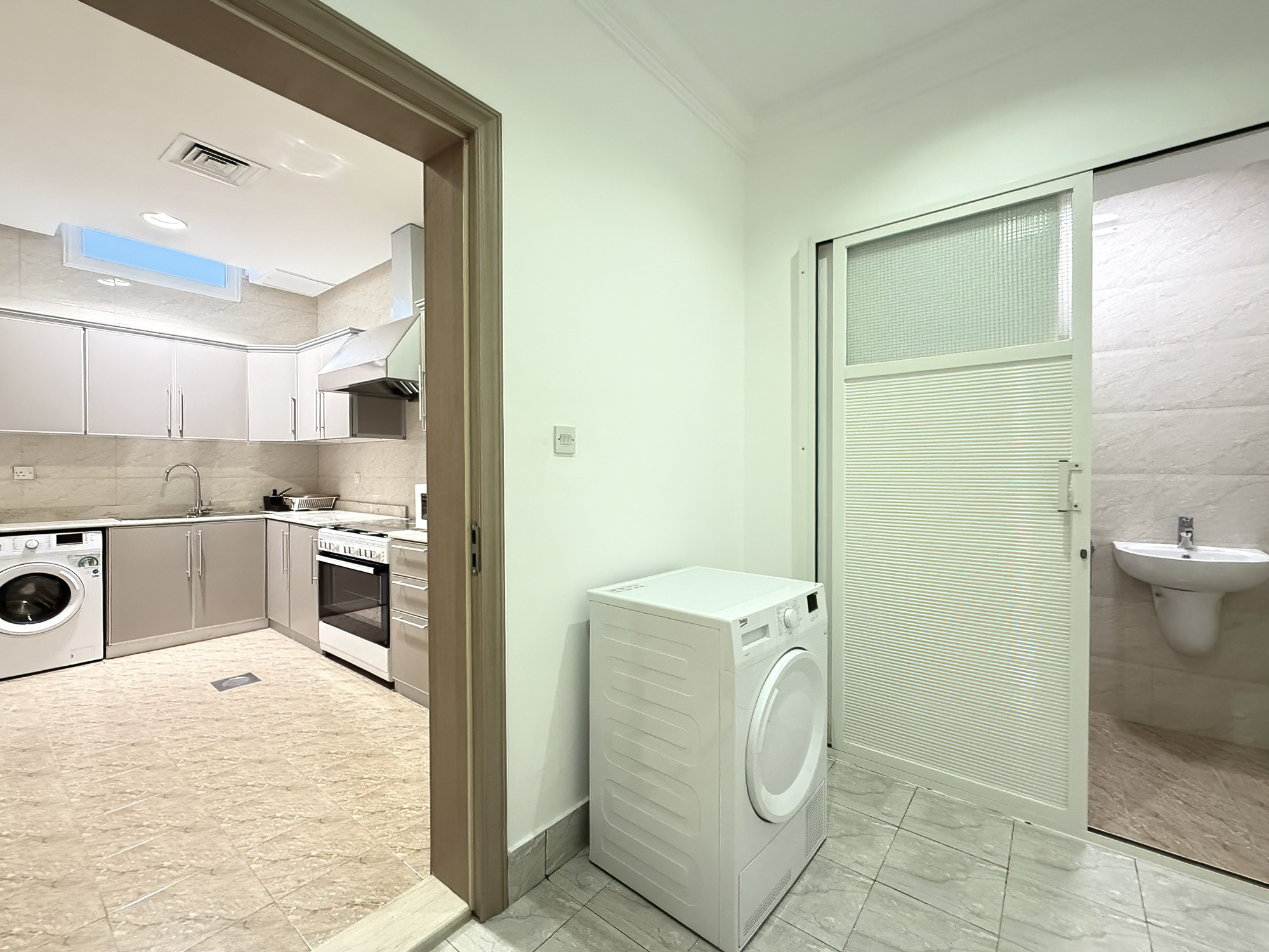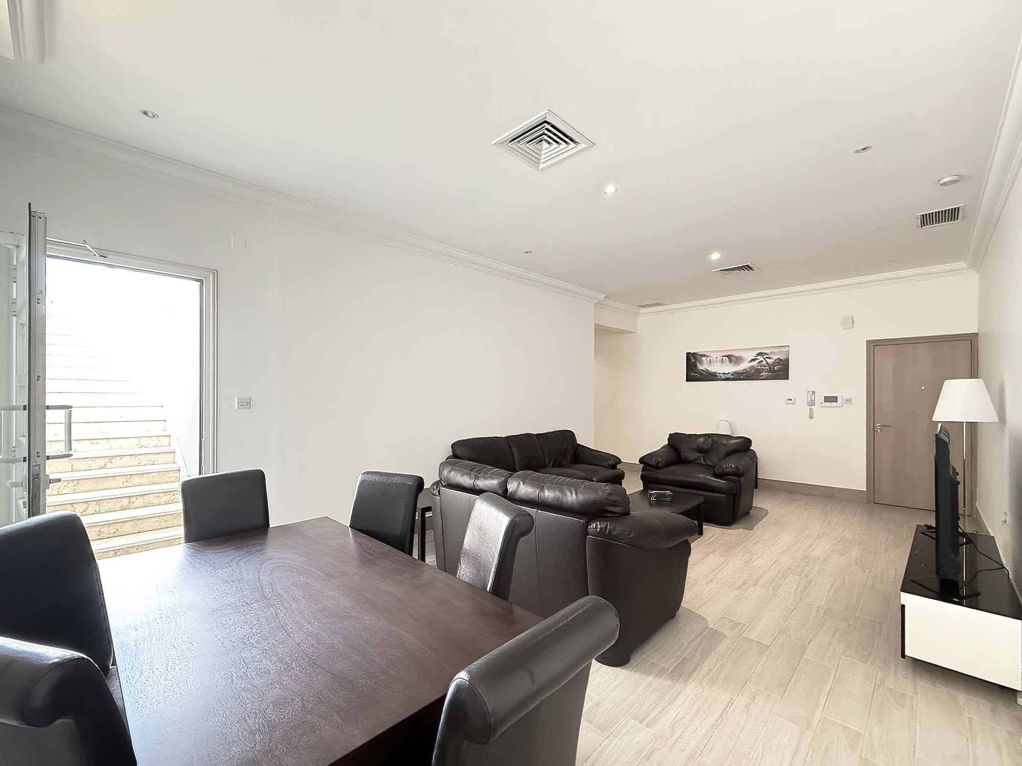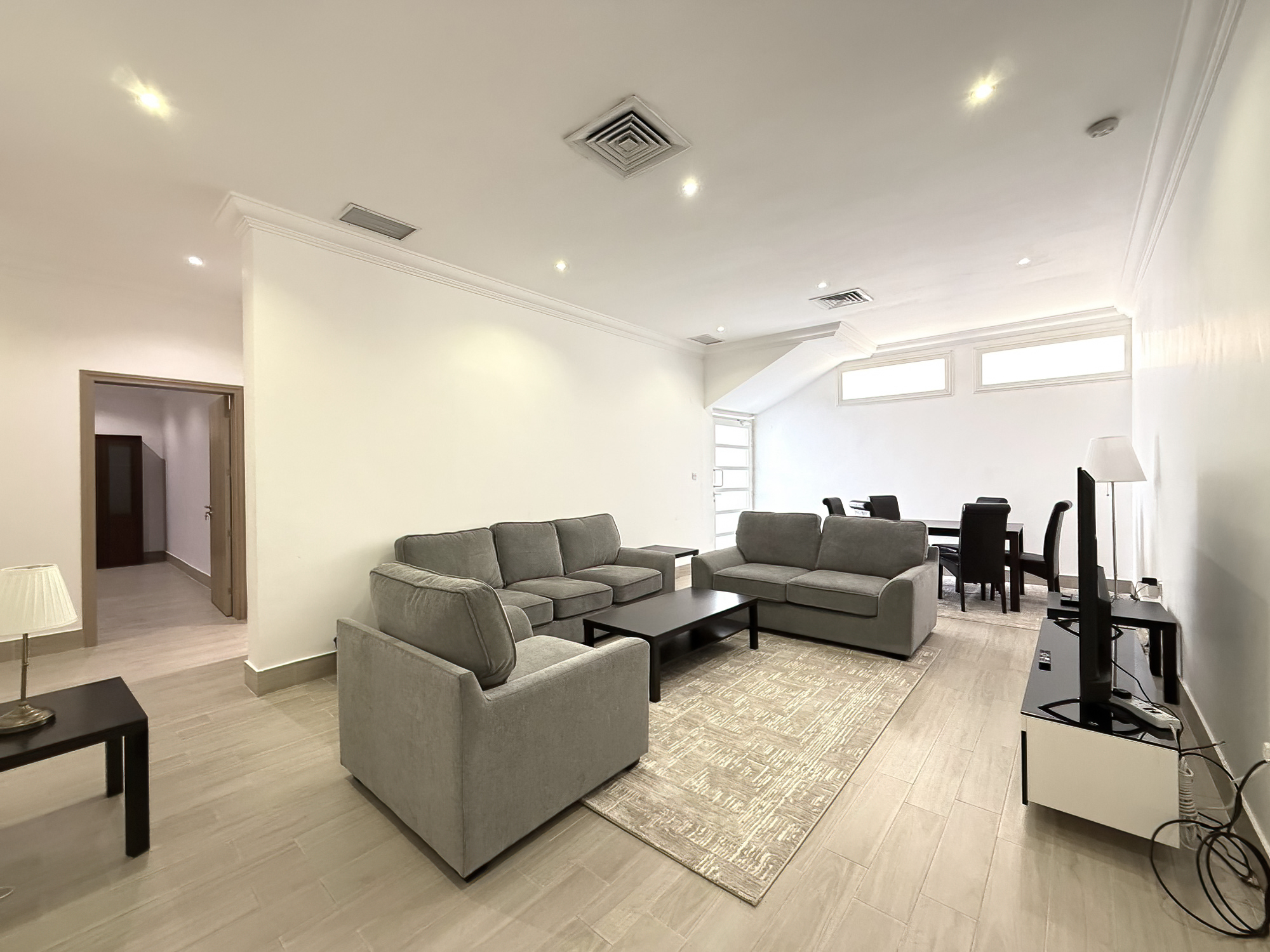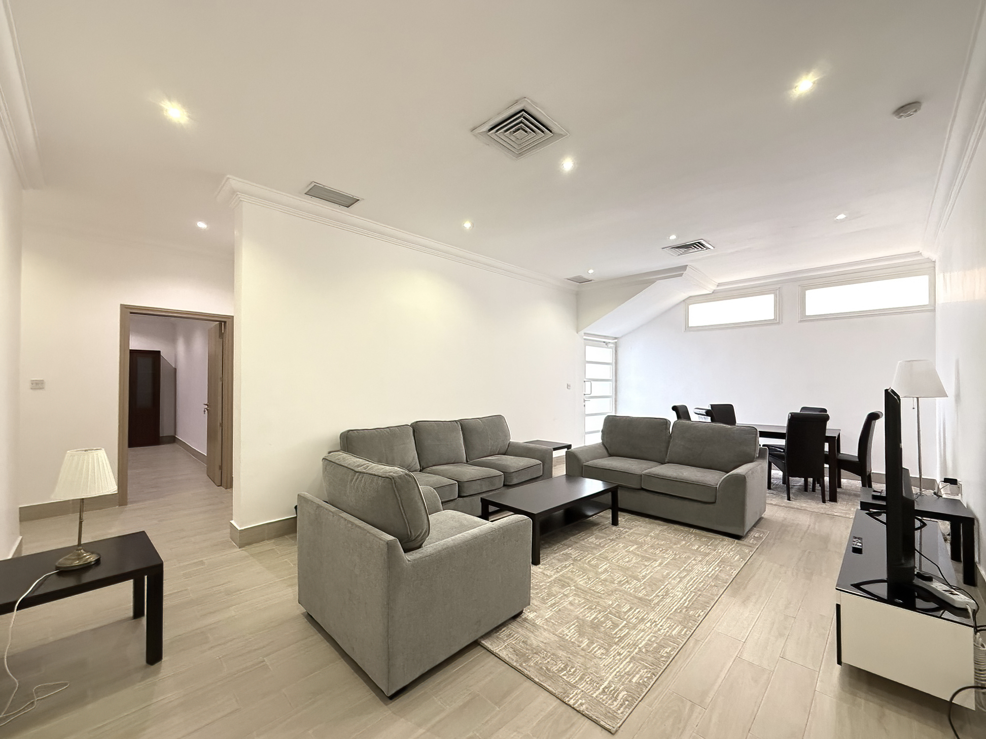 Furnished and unfurnished basement apartments for rent in Fnaitees, Kuwait – 3 bedrooms, 2.5 bathrooms, living room, kitchen.