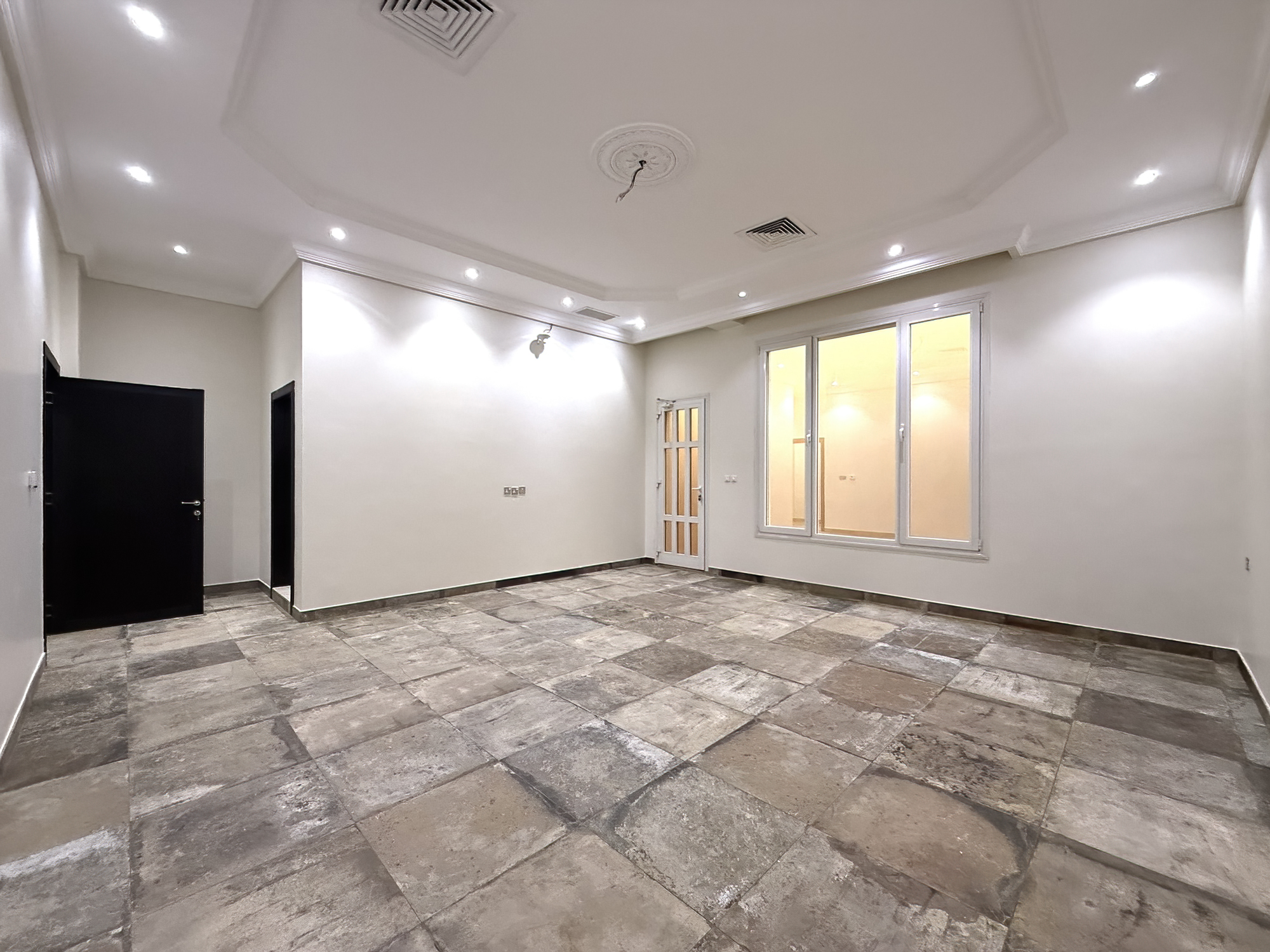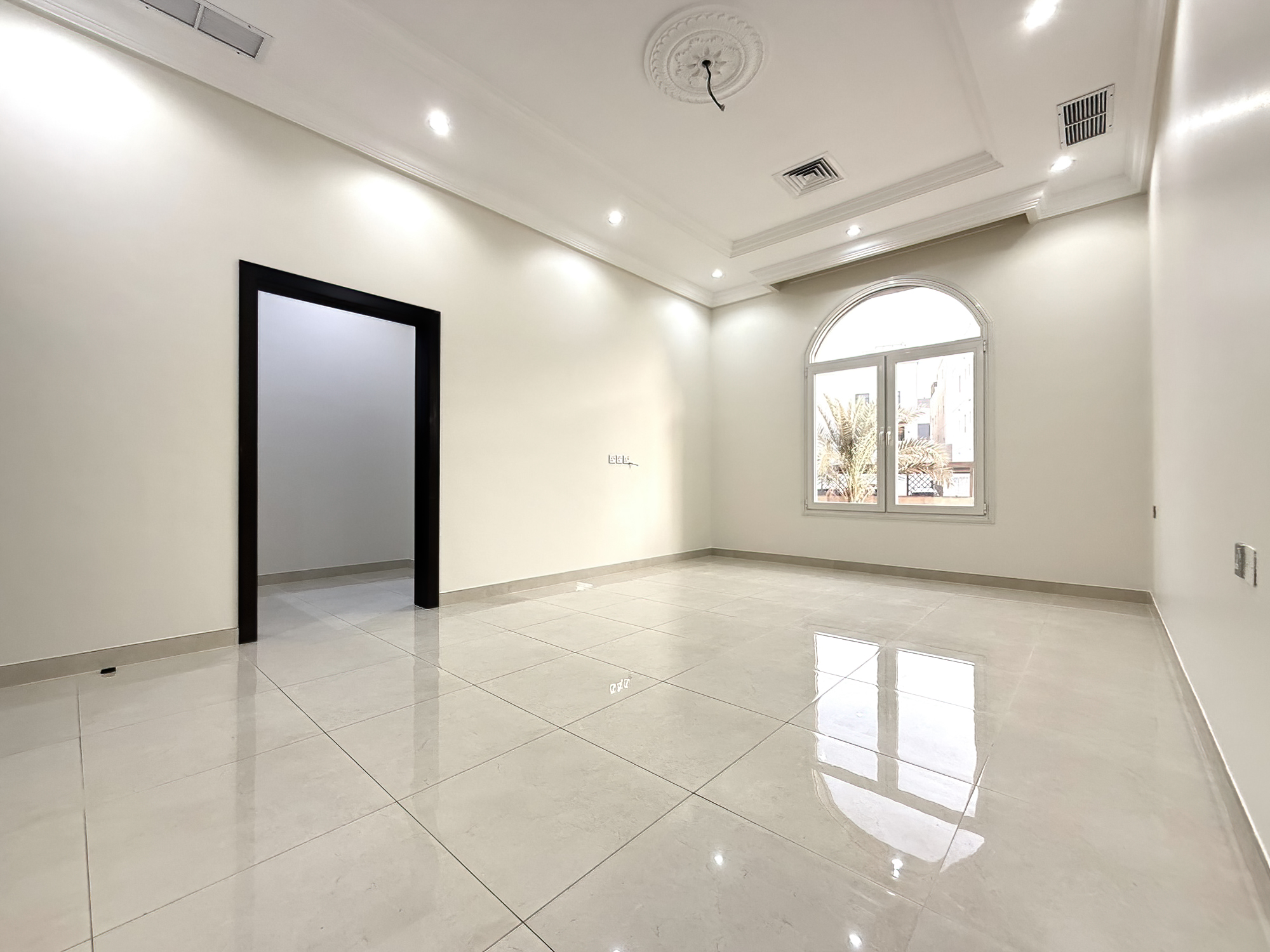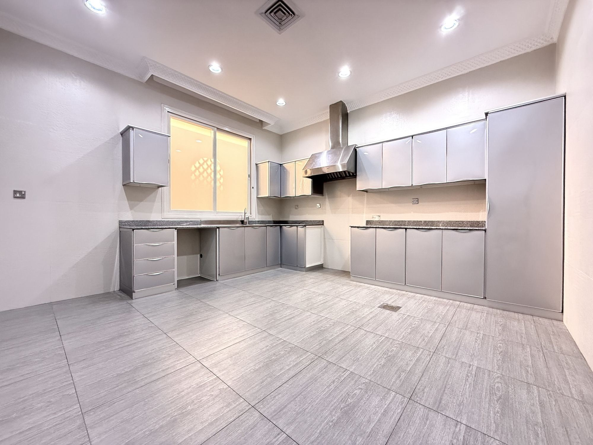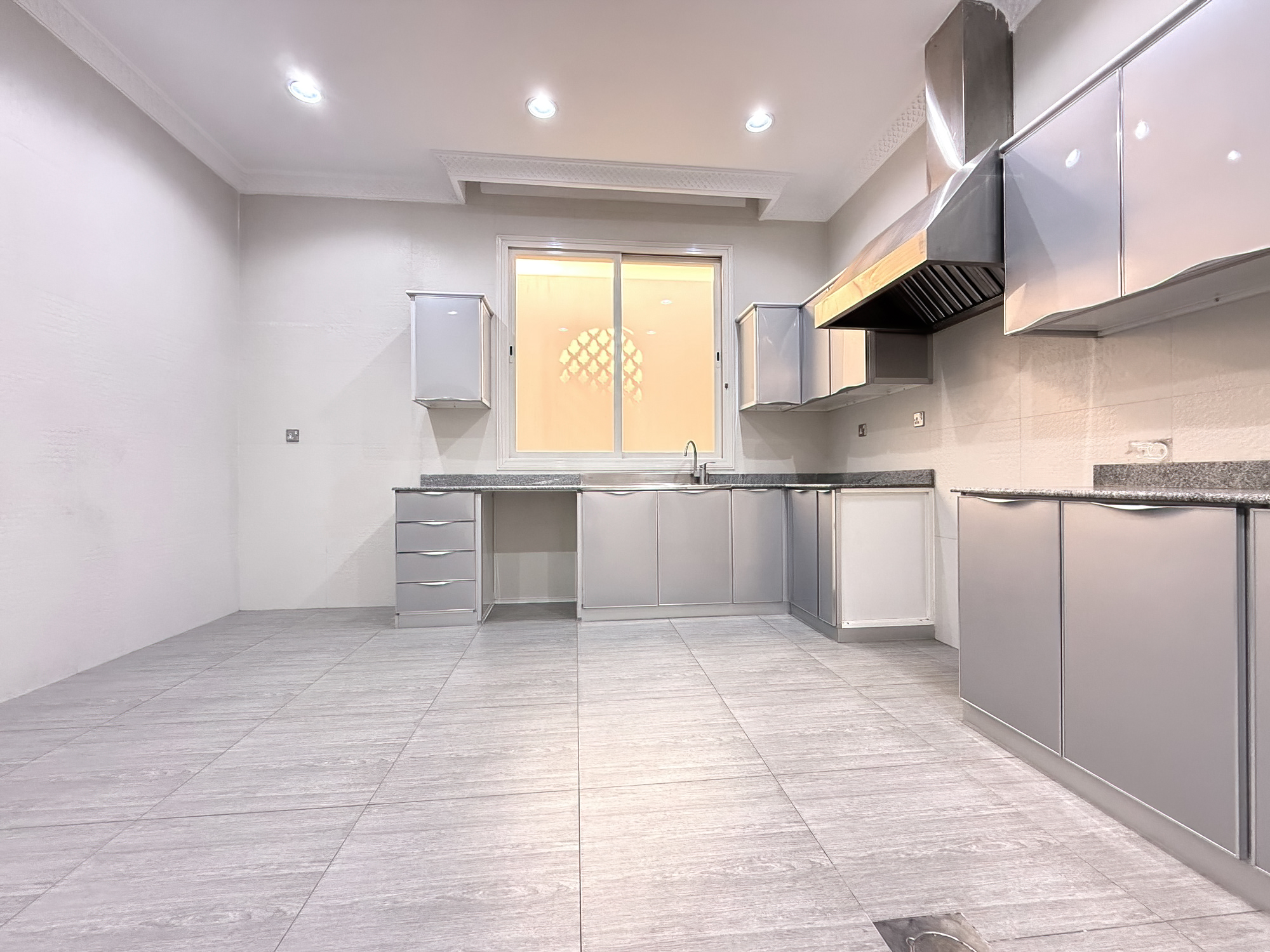 Extremely spacious duplex apartment for rent in Fnaitees, Kuwait – ground floor and basement, 5 bedrooms (3 master’s), 4.5 bathrooms, office room, living and dining area, 2 kitchens.