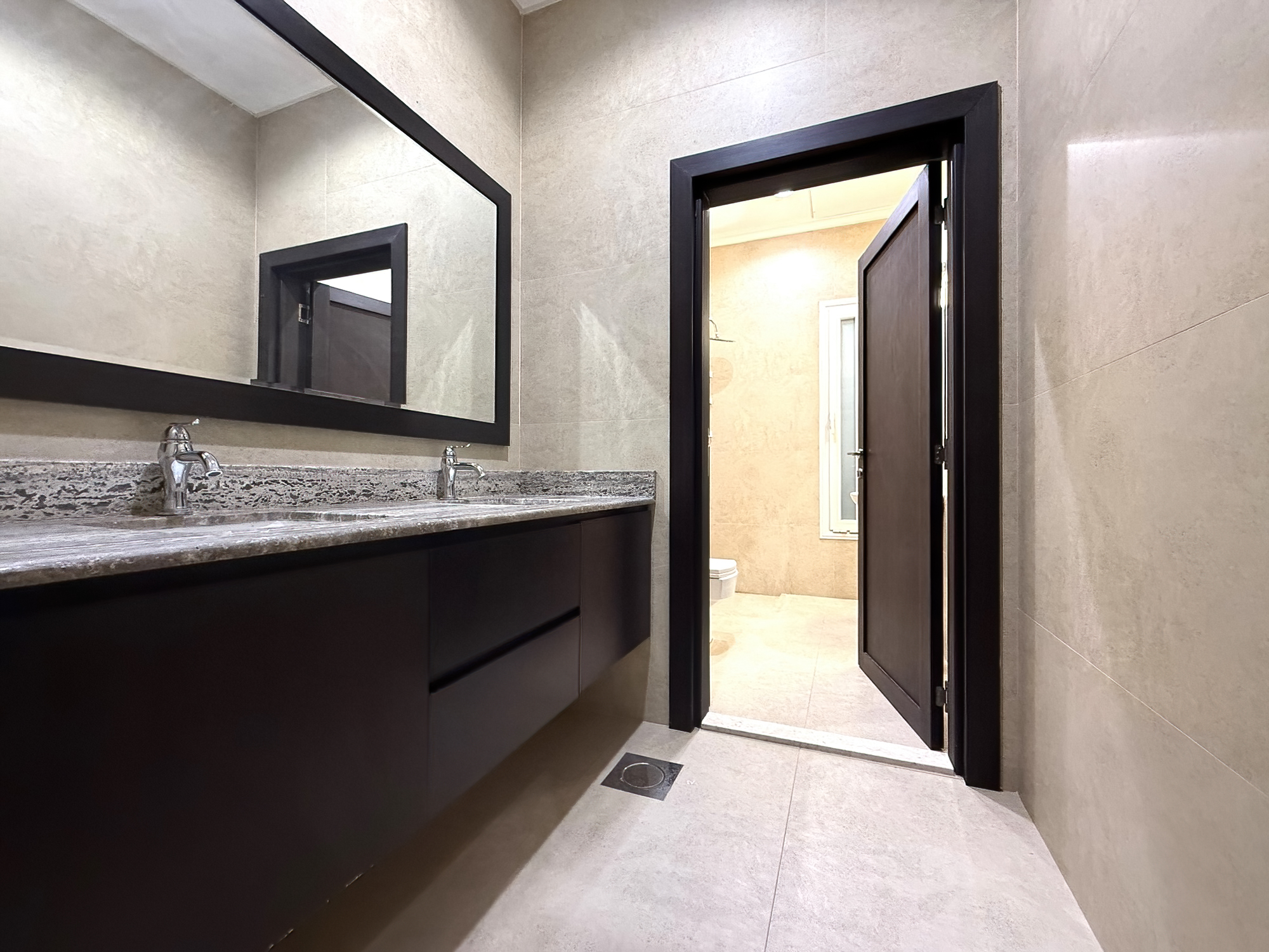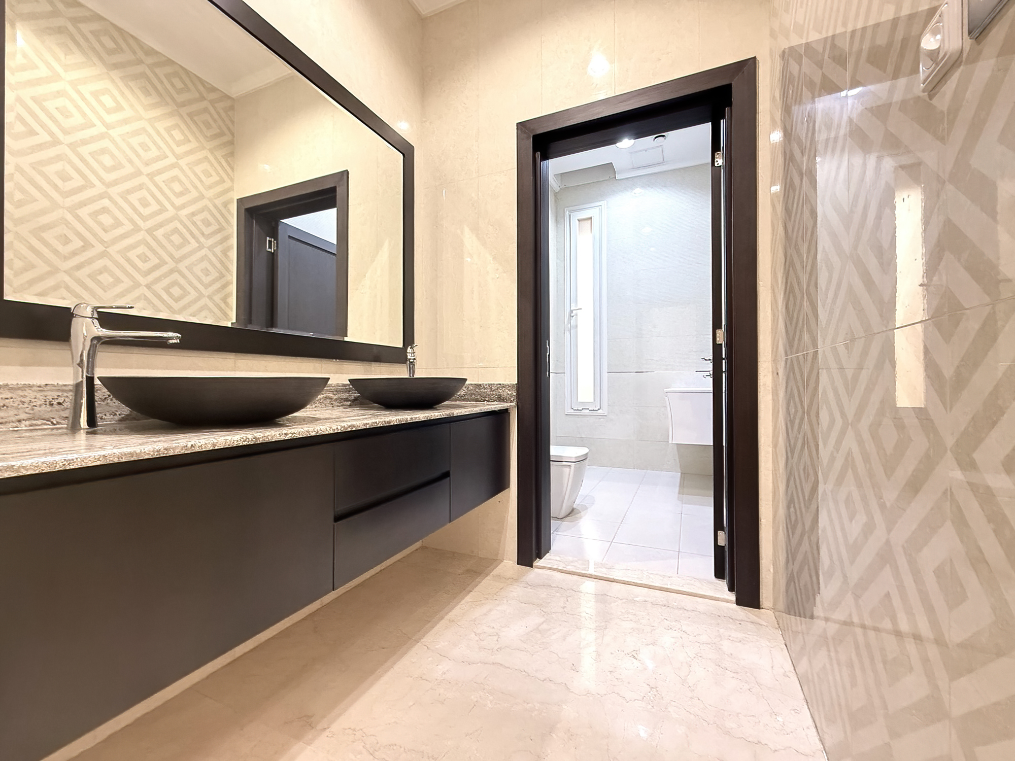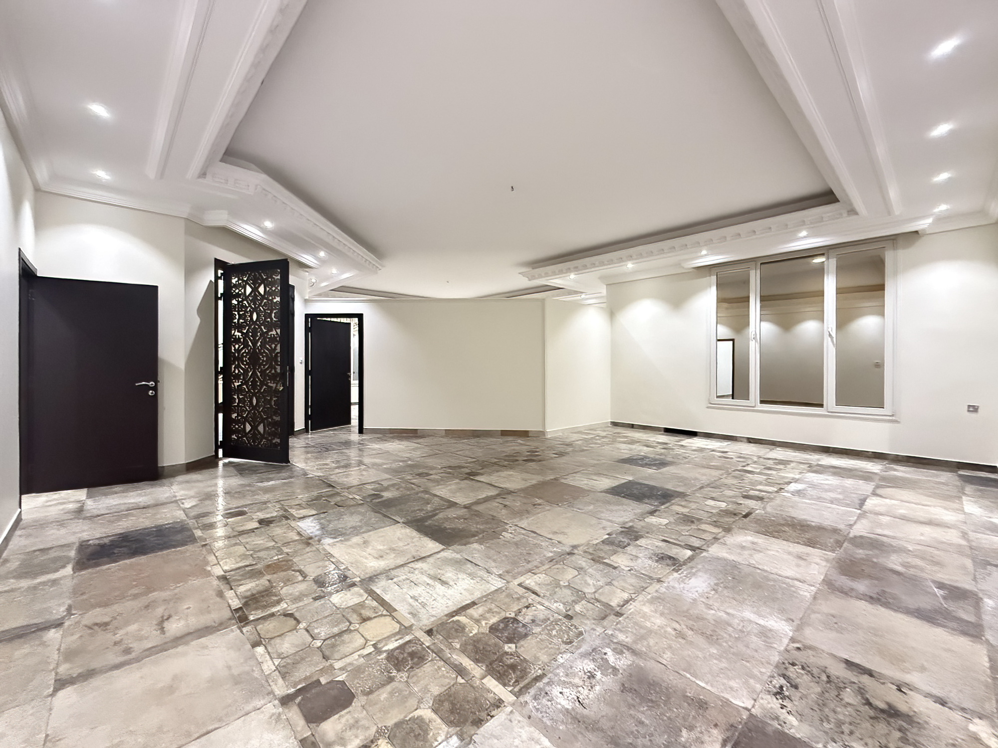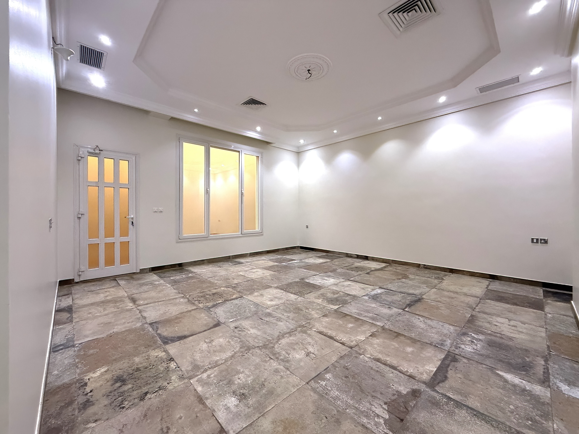 Extremely spacious duplex apartment for rent in Fnaitees, Kuwait – ground floor and basement, 5 bedrooms (3 master’s), 4.5 bathrooms, office room, living and dining area, 2 kitchens.