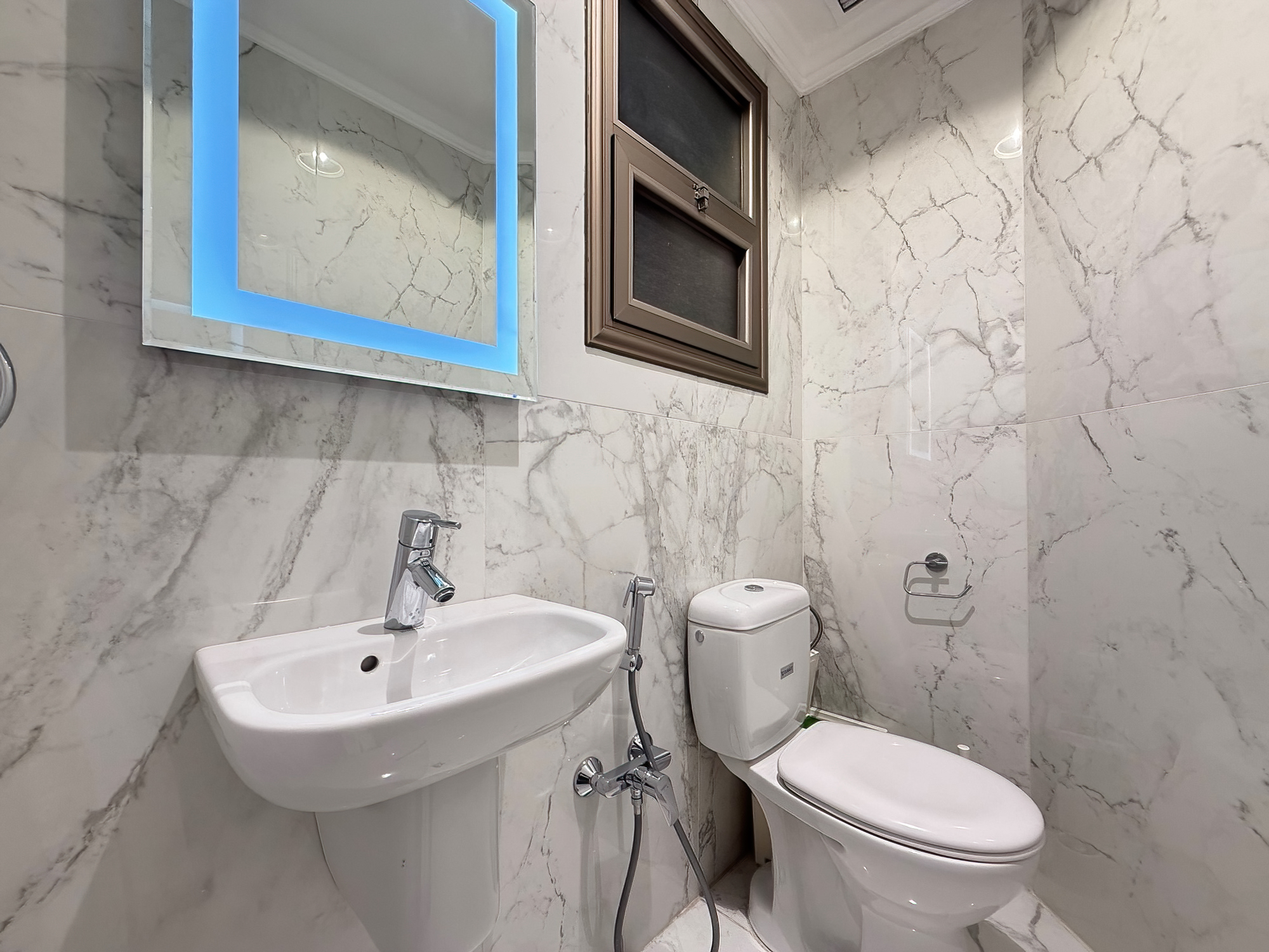 Two master bedrooms, semi furnished apartment for rent in Shaab, Kuwait – 2 bedrooms, 2.5 bathrooms, living room, kitchen.